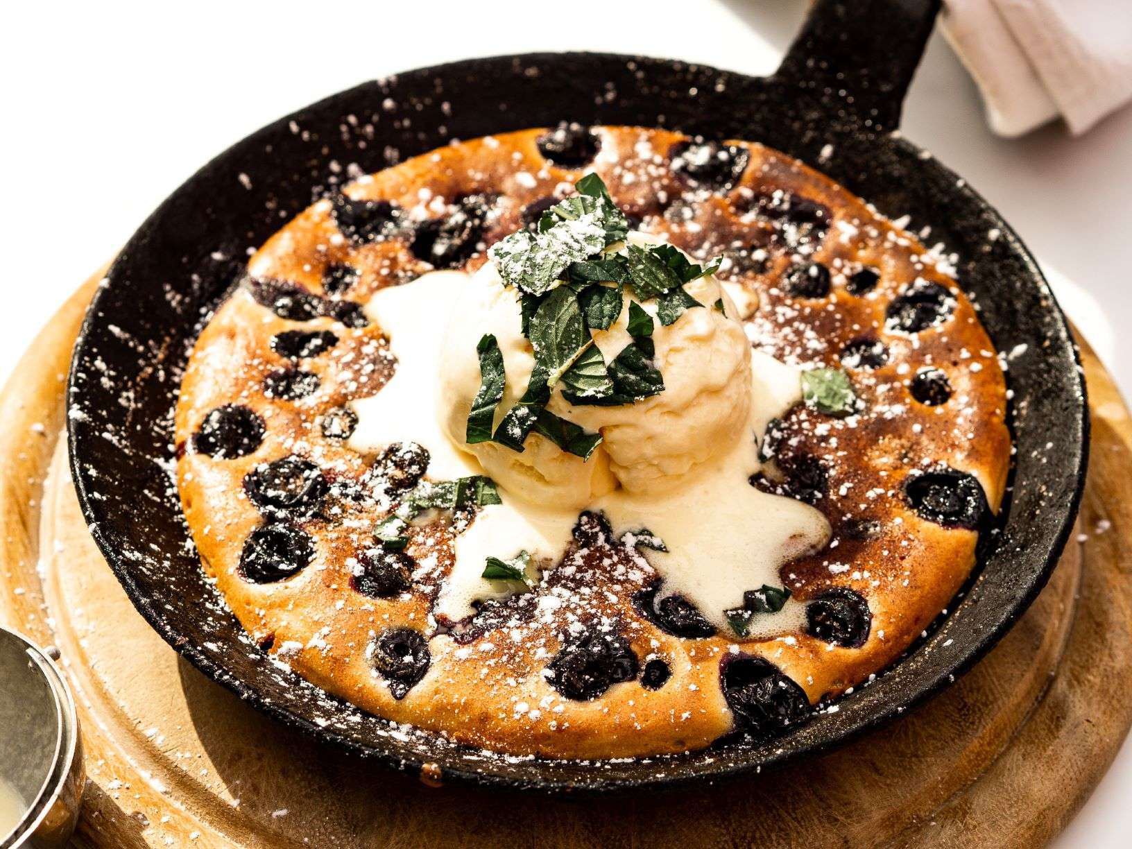 Diesen Spezialpfannkuchen à la Papa, habe ich bereits als Kind geliebt. Super einfach und herrlich lecker. Als Dessert, Hauptgang oder einfach so. Bei dem Teig, handelt es sich erneut um ein klassisches Grundrezept. Je mehr Heidelbeeren Ihr verwendet, desto saftiger wird er. Getoppt mit Vanilleeis und frischer Minze macht der Pfannkuchen nicht nur geschmacklich etwas her.
