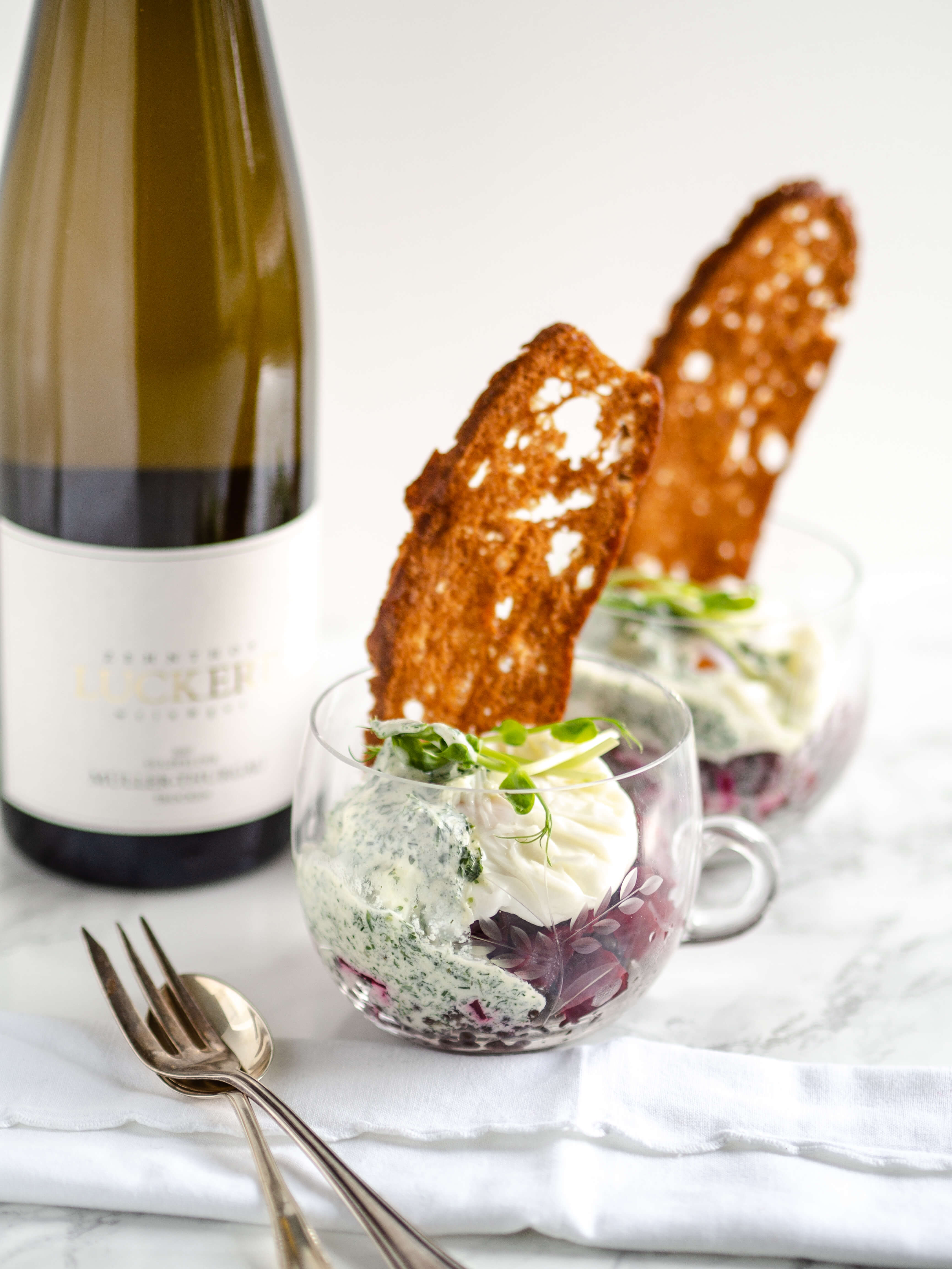 Pochiertes Ei auf Rote – Beete – Linsen – Tatar und grüner Sauce