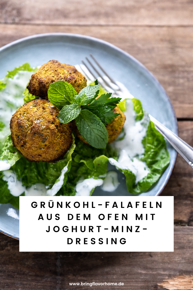 Grünkohl-Falafeln aus dem Ofen mit Joghurt-Minz-Dressing