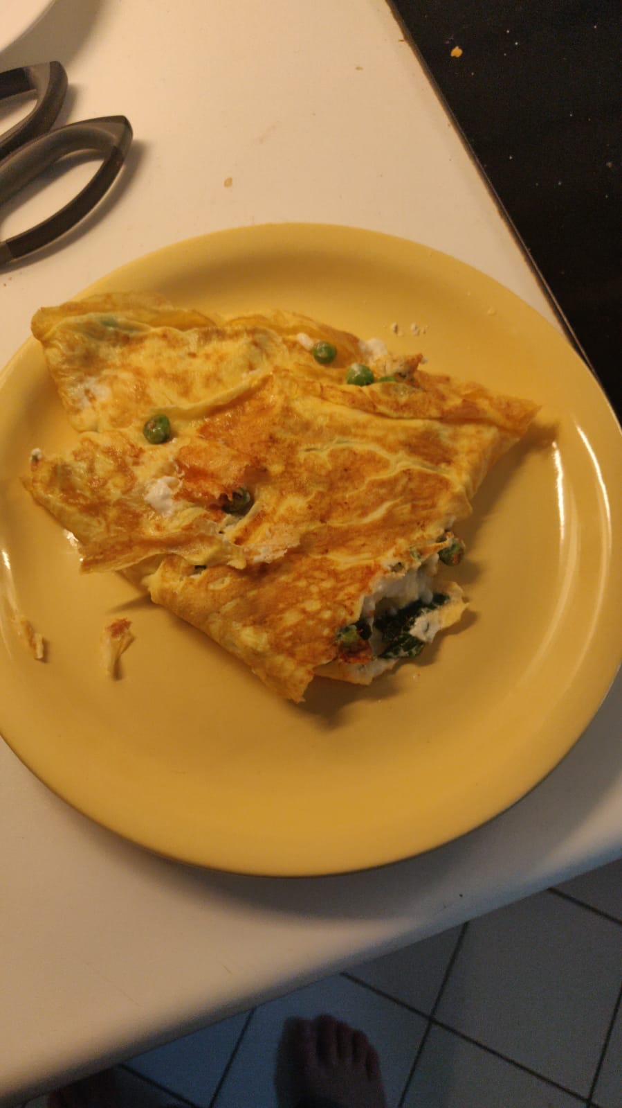 Unfälle passieren, wenn die Pfanne nicht gut beschichtet ist und wenn du den Belag nicht gleichmäßig auf der Eiermasse verteilst. Dann beibt der Kram entweder hängen oder das Omelette reißt wie in meinem Video auseinander – shit happens. Üben, üben, üben – irgendwann beglückst du sie alle mit deinem 2 Minuten Omelette. I have faith in you.